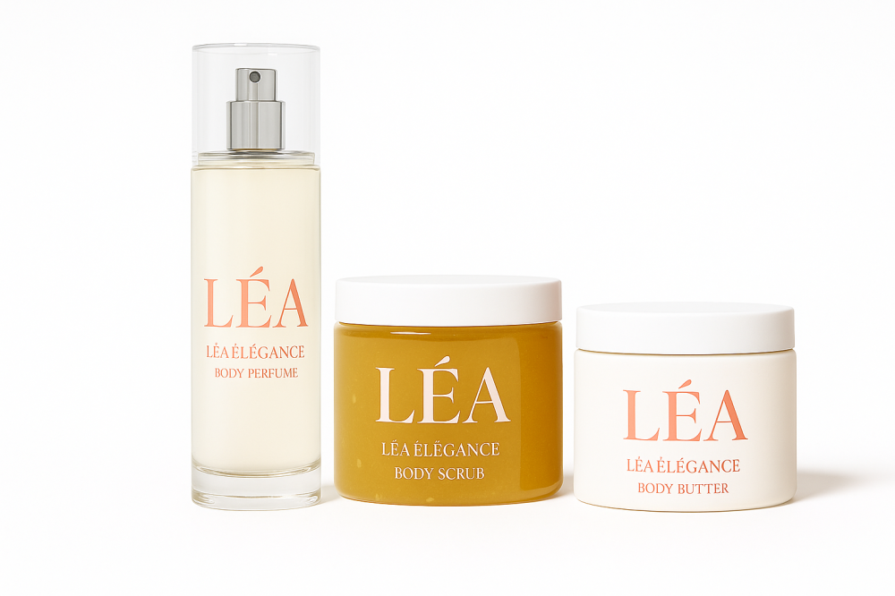 مجموعة LÉA ÉLÉGANCE تجربة فاخرة تجمع بين النعومة والأنوثة، تتكوّن من: مقشر الجسم، زبدة الجسم، وعطر الجسم. لأن الجمال يبدأ من التفاصيل �