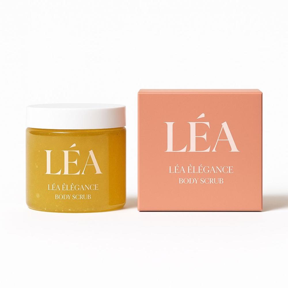 ⸻ LÉA ÉLÉGANCE BODY SCRUB – 350 ml مقشّر الجسم ليا إيليغانس – ٣٥٠ مل مقشّر فاخر يزيل خلايا الجلد الميتة بلطف، ويمنح بشرتك نعومة وانتعاش برائحة أنثوية فاخرة